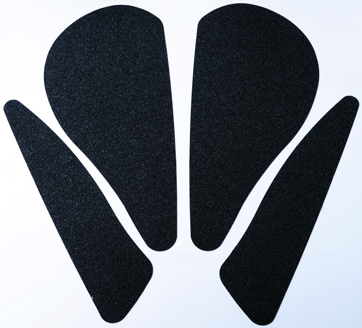 Each tank traction grip kit is supplied with precision pre-cut adhesive pieces, designed to fit the intended bike, typically in either 2, 4 or 6 pieces (in total) depending on the shape of the tank and adjoining fairing.