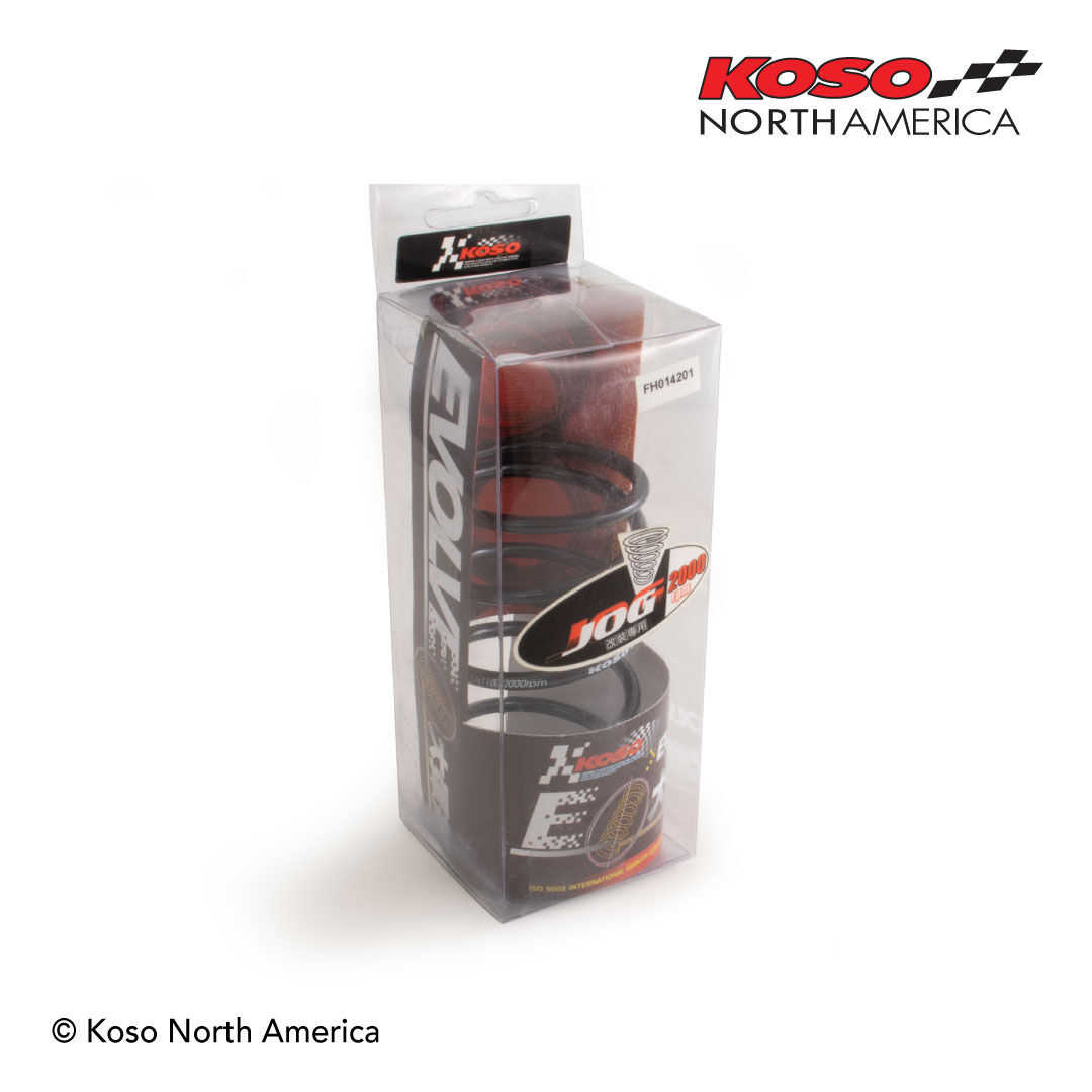 BRAND: Koso SKU: FH014201-WHigh quality compression spring with a special hi-efficiency coating to resist heat build up and keep spring tension consistent from the start of a moto all the way to the finish line. Springs with just the standard coating will build up heat and the spring tension will change causing erratic shift patterns.
