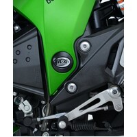 This frame plug fits neatly into the exposed swingarm pivot mounting holes visable on the frame of the Kawasaki Z800 (lhs).