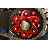 Rear sprocket flange for Ducati rear axle 6 holes made in light alloy, machined from solid and then anodized.Installation is easy and no changes are required, simply replacing the oem flange. Please check Specifications for model compatibility.Delivery note: At Sportsbike, we offer a wide range of high-quality products, many of which are sourced directly from Europe. We have stock both in Australia and shipped in directly from Europe. Therefore, please allow 1-3 weeks for delivery. This ensures we can provide the best selection and service for your specific needs. We will confirm the ETA of shipping within 24-48 hours of an order being placed. Thank you for your understanding and patience!