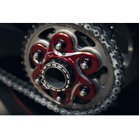 Rear sprocket flange for Ducati rear axle 6 holes made in light alloy, machined from solid and then anodized.The design is characterized by the double machining.Installation is easy and no changes are required, simply replacing the oem flange. Please check Specifications for model compatibility.Delivery note: At Sportsbike, we offer a wide range of high-quality products, many of which are sourced directly from Europe. We have stock both in Australia and shipped in directly from Europe. Therefore, please allow 1-3 weeks for delivery. This ensures we can provide the best selection and service for your specific needs. We will confirm the ETA of shipping within 24-48 hours of an order being placed. Thank you for your understanding and patience!