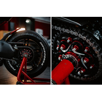 Rear sprocket flange for Ducati rear axle 6 holes made in light alloy, machined from solid and then anodized.The design is characterized by the double machining.Installation is easy and no changes are required, simply replacing the oem flange. Please check Specifications for model compatibility.Delivery note: At Sportsbike, we offer a wide range of high-quality products, many of which are sourced directly from Europe. We have stock both in Australia and shipped in directly from Europe. Therefore, please allow 1-3 weeks for delivery. This ensures we can provide the best selection and service for your specific needs. We will confirm the ETA of shipping within 24-48 hours of an order being placed. Thank you for your understanding and patience!