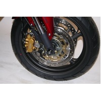 These fork protectors are suitable for the Honda Cb600 Hornet '05-'11 and the cb900 hornet and help to eliminate damage to the front forks during a drop.