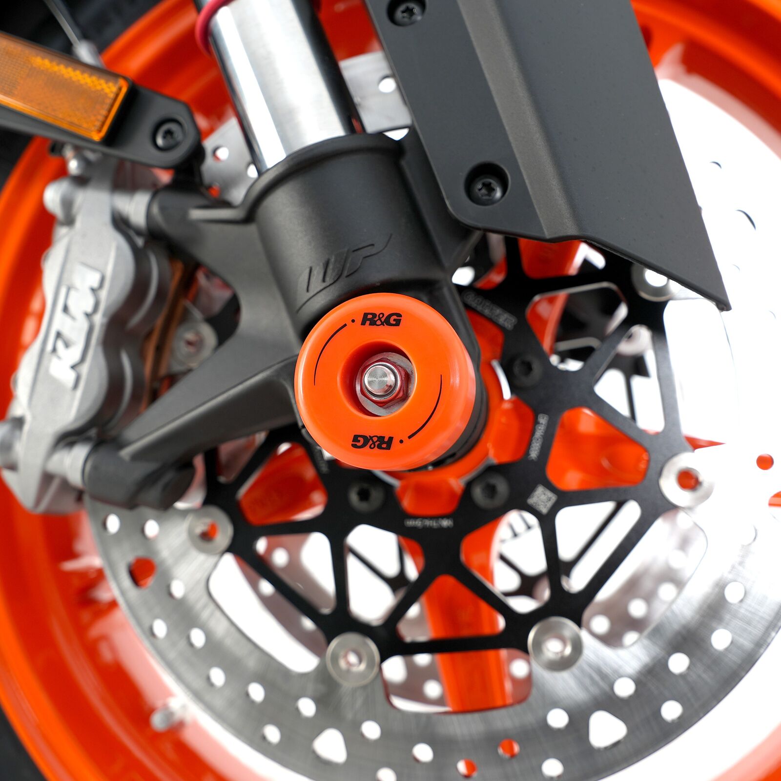 These fork protectors are suitable for the Ktm 790 Duke '18-, 990 duke '24- ,990r/990 super duke, Ktm 950 Supermoto, 990 supermoto, smr and smt & cfmoto 800nk '23- models, helping to eliminate damage to the front forks during a drop