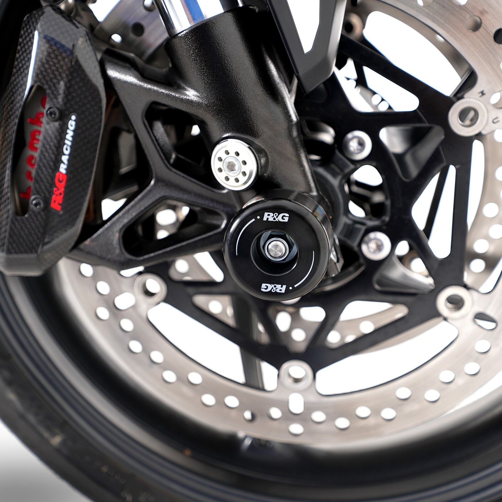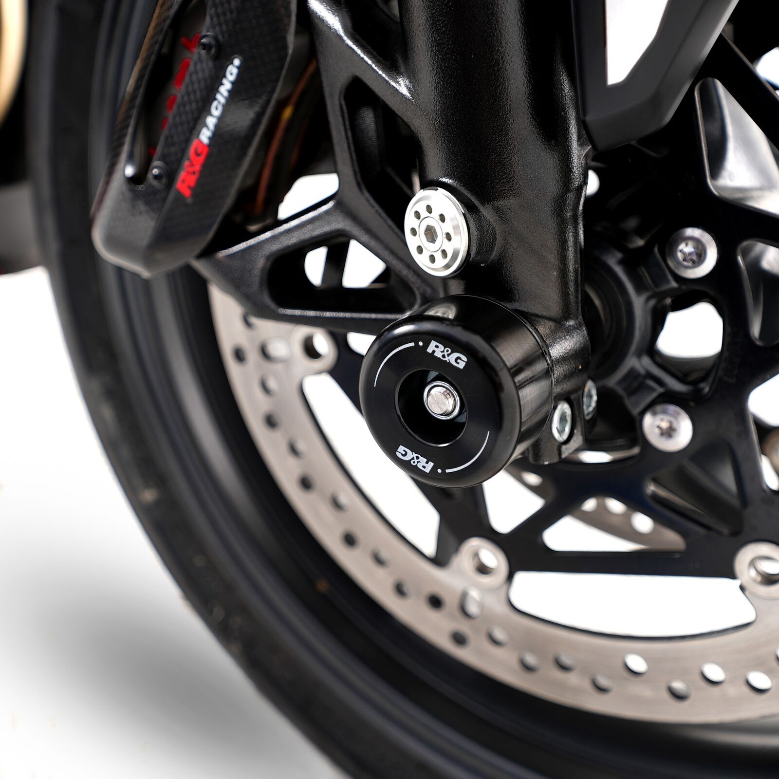 These R&G fork protectors are suitable for the Triumph Daytona 675 '13-, daytona 660 '24-, street triple rx '15-, street triple r/s/rs 765 '17-, daytona moto2™ 765 '20-, trident 660 '21- & tiger 660 sport '22- models