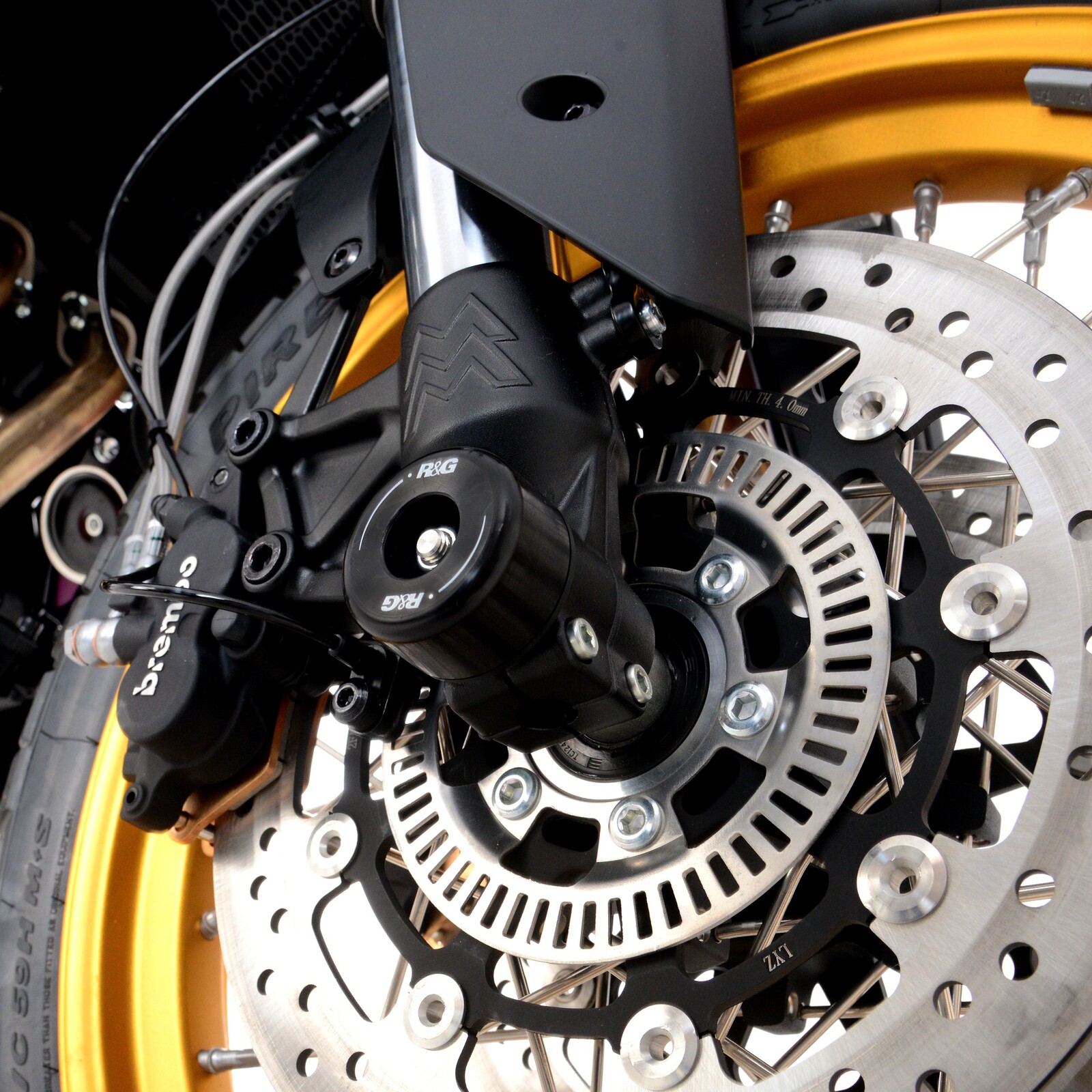 BRAND: R&G Racing SKU: FP0274BKEasy to install, they help to eliminate damage to the front forks, fork bottoms and brake callipers during a crash or drop.