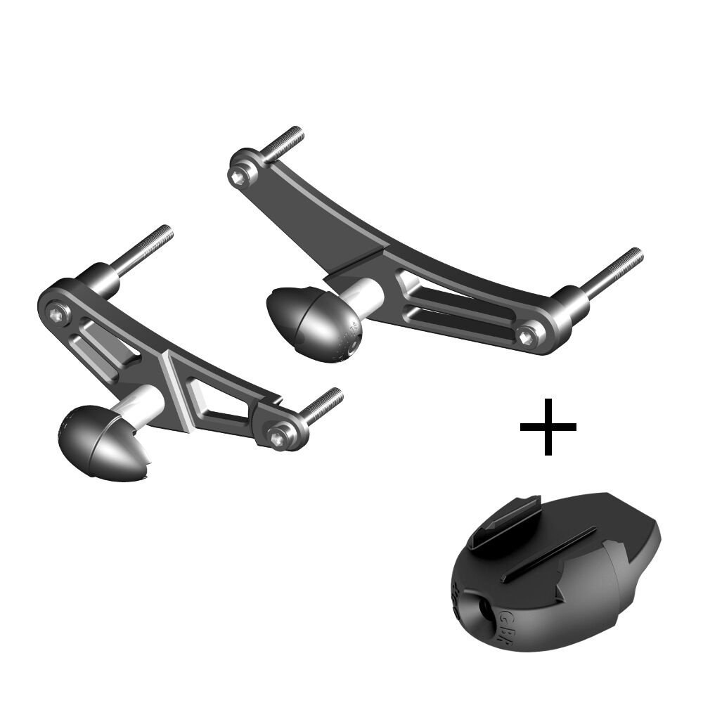 Race Developed Crash Protection from GBRacing Triumph Daytona 675, 675R and Street Triple / R Bullet Frame Slider GoPro™ Camera Mount bundle (Street) includes Bullet Frame Sliders w/brackets, left and right (Street) GoPro™ Camera Mount This revolutionary GBRacing design offers light weight protection using high grade engineering materials chosen for their superior crash protection and impact absorption qualities. This item is the complete GoPro™ Camera Mount bundle (left and right sides) including mounting brackets - no other parts required. Bolts on in minutes - no drilling or cutting of fairing required. Replacement Bullet sliders w/o brackets are available from our store. NB. Not suitable for Daytona 675 / 675R or Street Triple / R models 2013 onwards Available in 'Street' and 'Race' variants - this item is the 'Street' variant. The 'Street' set features longer tubes to position the Bullet beyond the fairing like a conventional crash knob, offering greater protection for the fairing as well as other frame and chassis components. Approx tube length (end to shoulder) 45mm (left) 35mm (right). The 'Race' set features shorter tubes to position the Bullet virtually flush with the fairing, reducing the risk of bike flipping during a slide while still protecting the frame. Approx tube length (end to shoulder) 30mm (left) 20mm (right). Additional point of contact for sliding, in conjunction with engine case covers Aluminum tubular design absorbing impact and distortion Bolt cap head is always 5mm away from stock mounting position - minimising the leverage Low cost bullet moulding replacement No modification of fairing required Designed, race developed and manufactured in the U.K. Suitable for Daytona 675, 675R and Street Triple / R 2006 - 2012 models only Part No. FS-675-2006-CS-S-GPR