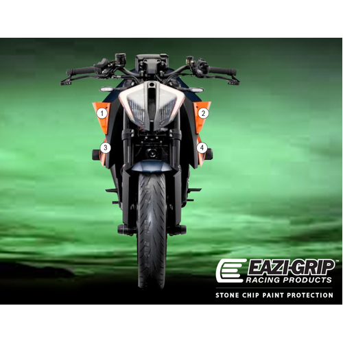 BRAND: Eazi-Grip SKU: GUARDKTM007Race Developed Stone Chip Paint Protection from Eazi-Guard KTM 1290 Super Duke R Stone Chip Paint Protection Film, gloss includes Pre-cut stone chip paint protection film Application solution Application tool Fitting Instructions Eazi-Guard stone chip protection tape is an Ultra-Thin, Ultra-Tough, polyurethane protection film, expertly designed to protect your bike and virtually eliminate damage..