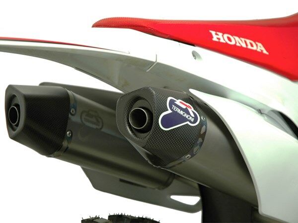Supported vehicles: HONDA CRF 450 R 2015-2016 FULL KIT: H128094IV The exhaust is composed of a Pair of Relevance C Silencers characterized by a main structure and Sleeve in stainless steel with Carbon Endcap to give more lightness and an exclusive character at your bike. Features: - Endcap Material: Carbon - Sleeve Material: Stainless Steel