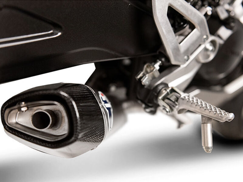 Supported vehicles: HONDA CB 125 2018-2020 FULL KIT: H15208040IIC The Kit includes the header realized in Stainless Steel with catalyzer, and silencer. The exhaust is characterized by a sleeve in Stainless Steel with cap in fine carbon fibre and metallic logo. Features: - Headers Material: Stainless Steel - Endcap Material: Stainless Steel - Sleeve Material: Carbon - Weight Saving: - 0,5 Kg