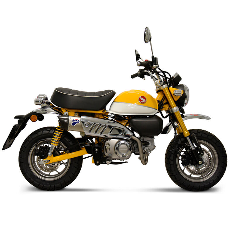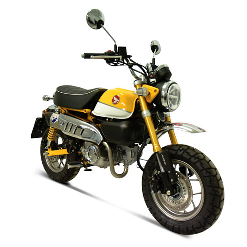 Supported vehicles: HONDA MONKEY 125 2018-2024 FULL KIT: H16509400IIC The full system kit includes one single collector and one silencer in stainless steal, with carbon end cap and metal logo plate. Features: - Headers Material: Stainless Steel - Sleeve Material: Stainless Steel - EndCap Material: Carbon - Riveted Logo A Termignoni silencer is a high-performance aftermarket exhaust component typically used on motorcycles, designed to enhance the bike's sound, performance, and aesthetic appeal. Termignoni is an Italian brand renowned for its high-quality exhaust systems, and their silencers are often featured in racing and performance applications. Key Features of a Termignoni Silencer: - Sound Quality: One of the standout features of Termignoni silencers is the distinctive and deep sound they produce. They are engineered to amplify the exhaust note while ensuring compliance with noise regulations, depending on the model and application. - Material Construction: Termignoni silencers are usually made from high-end materials like titanium, carbon fiber, and stainless steel. These materials are lightweight and durable, improving both the performance and the appearance of the motorcycle. - Performance: Termignoni exhaust systems, including their silencers, are designed to optimize exhaust flow, which can lead to increased horsepower and torque. This is particularly beneficial for riders who seek improved engine performance in both street and track conditions. - Design: Termignoni silencers are often sleek and stylish, with a focus on aesthetics that align with the high-performance motorcycle culture. Their design complements various motorcycle brands, including Ducati, Aprilia, and other premium performance bikes. - Racing and Street Models: Termignoni manufactures exhaust components for both racing and street applications. Racing models often feature lighter materials and more aggressive designs, while street models balance performance with noise regulation compliance for everyday use. - Tunability: In some cases, Termignoni offers full exhaust systems (not just the silencers) that are tuned for specific motorcycles, allowing for more precise adjustments to the exhaust flow, leading to better engine responsiveness and overall power output.