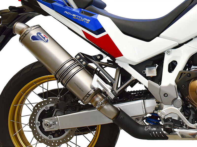 Supported vehicles: HONDA CRF 1100 L AFRICA TWIN 2020-2023 SILENCER: H16608040ITI Homologated Slip-On Realized in Titanium and comes complete with black painted heat shield. Features: - Endcap Material: Stainless Steel - Sleeve Material: Titanium In Terms of Performance: - Weight Saving: - 1,53 Kg - Power Increase: + 1,39 Hp - Torque Increase: + 1,39 Nm A Termignoni silencer is a high-performance aftermarket exhaust component typically used on motorcycles, designed to enhance the bike's sound, performance, and aesthetic appeal. Termignoni is an Italian brand renowned for its high-quality exhaust systems, and their silencers are often featured in racing and performance applications. Key Features of a Termignoni Silencer: - Sound Quality: One of the standout features of Termignoni silencers is the distinctive and deep sound they produce. They are engineered to amplify the exhaust note while ensuring compliance with noise regulations, depending on the model and application. - Material Construction: Termignoni silencers are usually made from high-end materials like titanium, carbon fiber, and stainless steel. These materials are lightweight and durable, improving both the performance and the appearance of the motorcycle. - Performance: Termignoni exhaust systems, including their silencers, are designed to optimize exhaust flow, which can lead to increased horsepower and torque. This is particularly beneficial for riders who seek improved engine performance in both street and track conditions. - Design: Termignoni silencers are often sleek and stylish, with a focus on aesthetics that align with the high-performance motorcycle culture. Their design complements various motorcycle brands, including Ducati, Aprilia, and other premium performance bikes. - Racing and Street Models: Termignoni manufactures exhaust components for both racing and street applications. Racing models often feature lighter materials and more aggressive designs, while street models balance performance with noise regulation compliance for everyday use. - Tunability: In some cases, Termignoni offers full exhaust systems (not just the silencers) that are tuned for specific motorcycles, allowing for more precise adjustments to the exhaust flow, leading to better engine responsiveness and overall power output.