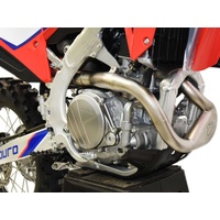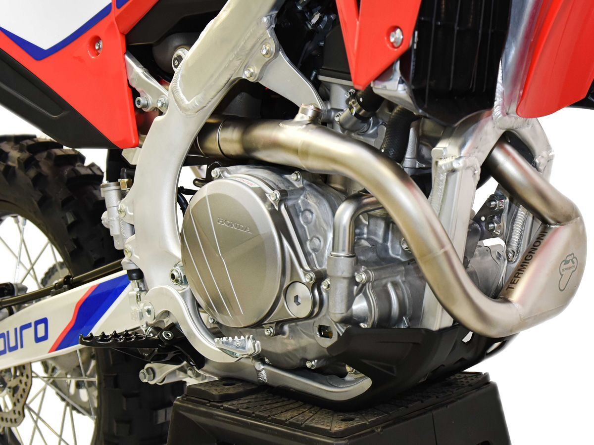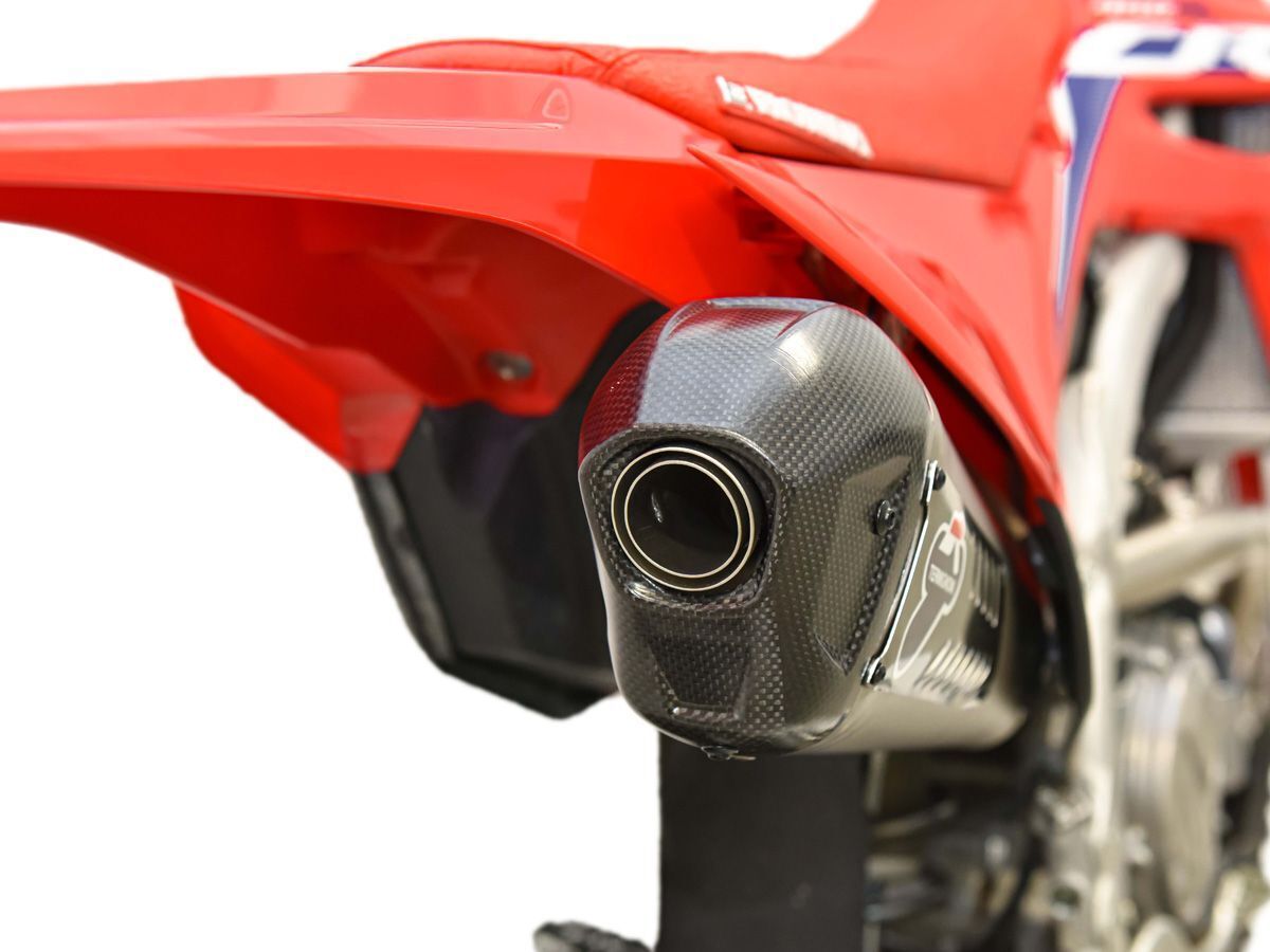 Supported vehicles: HONDA CRF 450 2021-2025 FULL KIT: H17309400ITC The Full Kit Exhaust is Built in Stainless Steel, The Silencer is characterized by Titanium Sleeve and Carbon Endcap Features: - Headers Material: Stainless Steel - Endcap Material: Carbon - Sleeve Material: Titanium - Termoresistant Logo A Termignoni silencer is a high-performance aftermarket exhaust component typically used on motorcycles, designed to enhance the bike's sound, performance, and aesthetic appeal. Termignoni is an Italian brand renowned for its high-quality exhaust systems, and their silencers are often featured in racing and performance applications. Key Features of a Termignoni Silencer: - Sound Quality: One of the standout features of Termignoni silencers is the distinctive and deep sound they produce. They are engineered to amplify the exhaust note while ensuring compliance with noise regulations, depending on the model and application. - Material Construction: Termignoni silencers are usually made from high-end materials like titanium, carbon fiber, and stainless steel. These materials are lightweight and durable, improving both the performance and the appearance of the motorcycle. - Performance: Termignoni exhaust systems, including their silencers, are designed to optimize exhaust flow, which can lead to increased horsepower and torque. This is particularly beneficial for riders who seek improved engine performance in both street and track conditions. - Design: Termignoni silencers are often sleek and stylish, with a focus on aesthetics that align with the high-performance motorcycle culture. Their design complements various motorcycle brands, including Ducati, Aprilia, and other premium performance bikes. - Racing and Street Models: Termignoni manufactures exhaust components for both racing and street applications. Racing models often feature lighter materials and more aggressive designs, while street models balance performance with noise regulation compliance for everyday use. - Tunability: In some cases, Termignoni offers full exhaust systems (not just the silencers) that are tuned for specific motorcycles, allowing for more precise adjustments to the exhaust flow, leading to better engine responsiveness and overall power output.