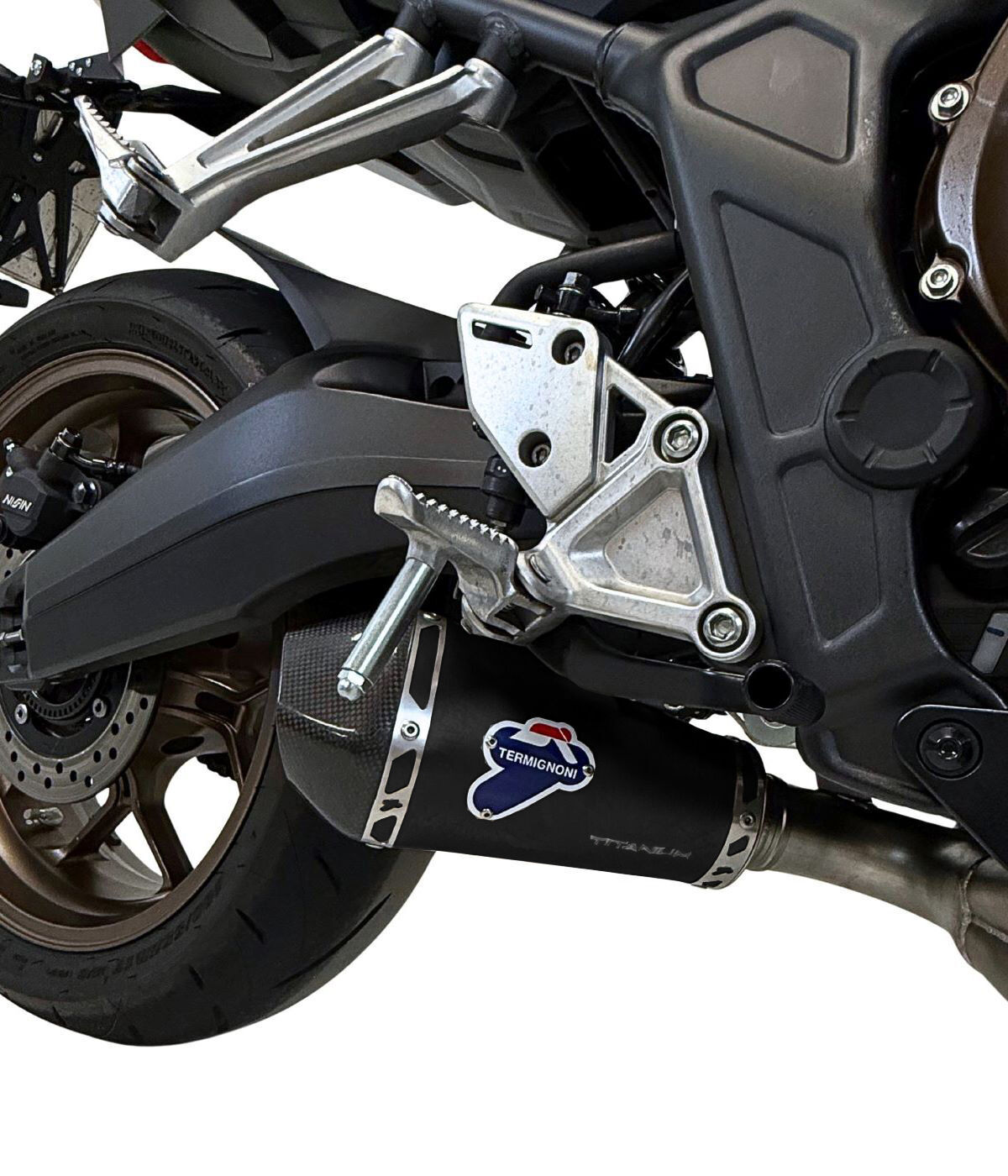 Termignoni presents the complete racing kit designed for the Honda CB650 R. The exhaust consists of a complete racing stainless steel header kit H18409410I compatible with the Termignoni universal slip-on range. The system is a racing system and is not homologated. Compatible with Honda E-Clutch system. WEIGHT Weight difference compared to OEM -6.4 kg POWER [HP], Delta vs OEM MAX Gain 4HP @ 10970 rpm TORQUE [Nm], Delta vs OEM Max Gain 1.42Nm@8560Rpm