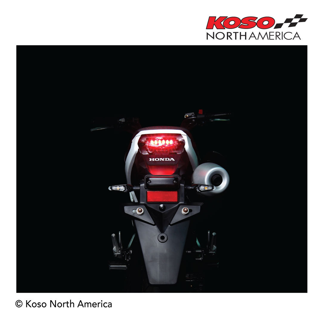 BRAND: Koso SKU: HB025010Set your motorcycle apart using the Koso Infinity taillight. Available with red or smoke lens, its 6 ultra‑bright LED lights will increase your visibility. This taillight also has a license plate light which makes it better. Affordable and easy to install, this is a must to customize your motorcycle or scooter.
