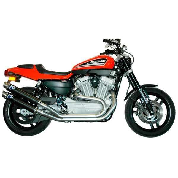 Supported vehicles: HARLEY DAVIDSON XR 1200 R 2008-2012 FULL KIT: HD03080CR Pair of Oval Silencers characterized by a main structure in stainless steel, with Carbon Sleeve Features: - Endcap Material: Stainless Steel - Sleeve Material: Carbon - Weight Saving: -1,6 kg