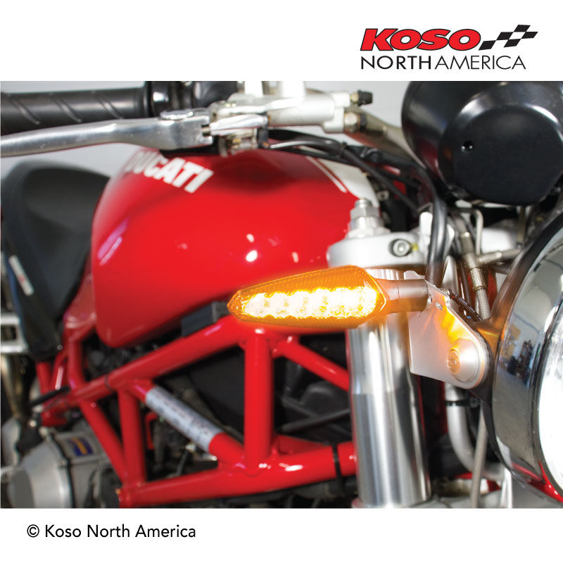 BRAND: Koso SKU: HE032020The Koso Nuovo LED indicator lights are a great way to modernize the look of your bike without straying away from the OEM appearance. Sold in a pair of two, DOT and SAE certified. These indicators feature 6 ultra-bright LED’s per indicator to keep you safer and more visible when changing lanes.