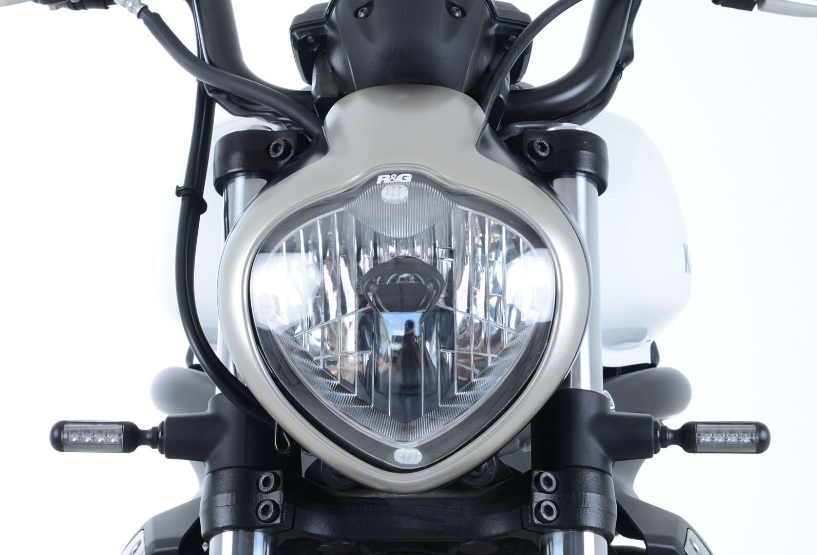 R&G headlight shield (hls0015) - shown fitted to Kawasaki Vulcan S '16- precision-formed using the latest 3d scanning technology and cnc trimmed - ensuring an exact fit to the profile of the oe light.
