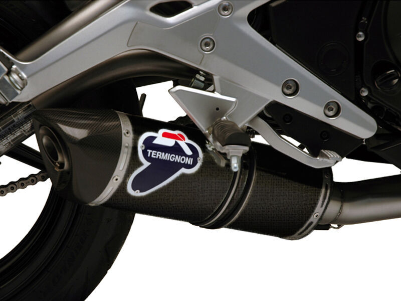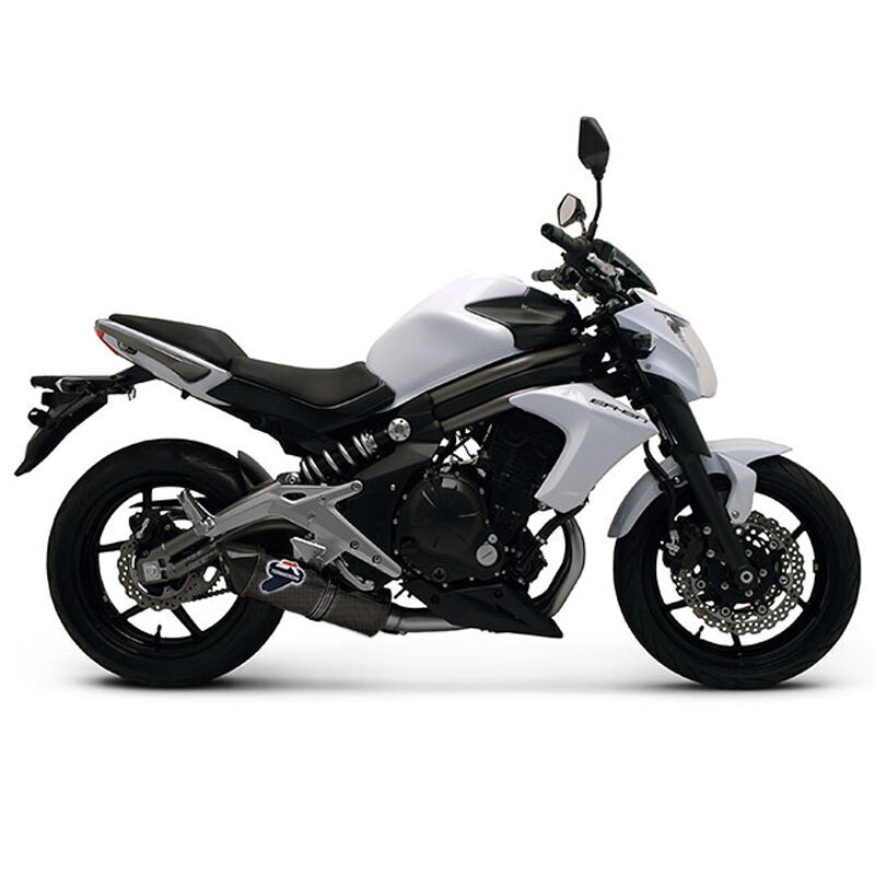 Supported vehicles: KAWASAKI ER-6N 2012-2016 FULL KIT: K072080CO The Full Kit Exhaust is Built in Stainless Steel, The Silencer is characterized by Stainless Steel Structure with Carbon Sleeve and endcap Features: - Headers Material: Stainless Steel - Endcap Material: Carbon - Sleeve Material: Carbon - Weitght Saving: - 3,6 Kg A Termignoni silencer is a high-performance aftermarket exhaust component typically used on motorcycles, designed to enhance the bike's sound, performance, and aesthetic appeal. Termignoni is an Italian brand renowned for its high-quality exhaust systems, and their silencers are often featured in racing and performance applications. Key Features of a Termignoni Silencer: - Sound Quality: One of the standout features of Termignoni silencers is the distinctive and deep sound they produce. They are engineered to amplify the exhaust note while ensuring compliance with noise regulations, depending on the model and application. - Material Construction: Termignoni silencers are usually made from high-end materials like titanium, carbon fiber, and stainless steel. These materials are lightweight and durable, improving both the performance and the appearance of the motorcycle. - Performance: Termignoni exhaust systems, including their silencers, are designed to optimize exhaust flow, which can lead to increased horsepower and torque. This is particularly beneficial for riders who seek improved engine performance in both street and track conditions. - Design: Termignoni silencers are often sleek and stylish, with a focus on aesthetics that align with the high-performance motorcycle culture. Their design complements various motorcycle brands, including Ducati, Aprilia, and other premium performance bikes. - Racing and Street Models: Termignoni manufactures exhaust components for both racing and street applications. Racing models often feature lighter materials and more aggressive designs, while street models balance performance with noise regulation compliance for everyday use. - Tunability: In some cases, Termignoni offers full exhaust systems (not just the silencers) that are tuned for specific motorcycles, allowing for more precise adjustments to the exhaust flow, leading to better engine responsiveness and overall power output.