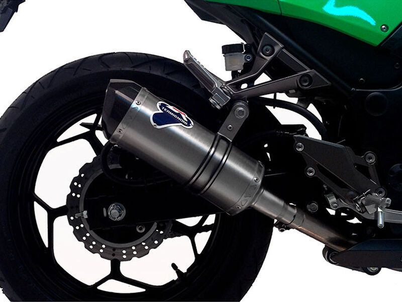 Supported vehicles: KAWASAKI NINJA 300 R 2012-2017 SILENCER: K074094CV The exhaust is characterized by the main structure in stainless steel with carbon cap. Features: - Endcap Material: Carbon - Sleeve Material: Stainless Steel - Weight Saving: - 3 Kg A Termignoni silencer is a high-performance aftermarket exhaust component typically used on motorcycles, designed to enhance the bike's sound, performance, and aesthetic appeal. Termignoni is an Italian brand renowned for its high-quality exhaust systems, and their silencers are often featured in racing and performance applications. Key Features of a Termignoni Silencer: - Sound Quality: One of the standout features of Termignoni silencers is the distinctive and deep sound they produce. They are engineered to amplify the exhaust note while ensuring compliance with noise regulations, depending on the model and application. - Material Construction: Termignoni silencers are usually made from high-end materials like titanium, carbon fiber, and stainless steel. These materials are lightweight and durable, improving both the performance and the appearance of the motorcycle. - Performance: Termignoni exhaust systems, including their silencers, are designed to optimize exhaust flow, which can lead to increased horsepower and torque. This is particularly beneficial for riders who seek improved engine performance in both street and track conditions. - Design: Termignoni silencers are often sleek and stylish, with a focus on aesthetics that align with the high-performance motorcycle culture. Their design complements various motorcycle brands, including Ducati, Aprilia, and other premium performance bikes. - Racing and Street Models: Termignoni manufactures exhaust components for both racing and street applications. Racing models often feature lighter materials and more aggressive designs, while street models balance performance with noise regulation compliance for everyday use. - Tunability: In some cases, Termignoni offers full exhaust systems (not just the silencers) that are tuned for specific motorcycles, allowing for more precise adjustments to the exhaust flow, leading to better engine responsiveness and overall power output.