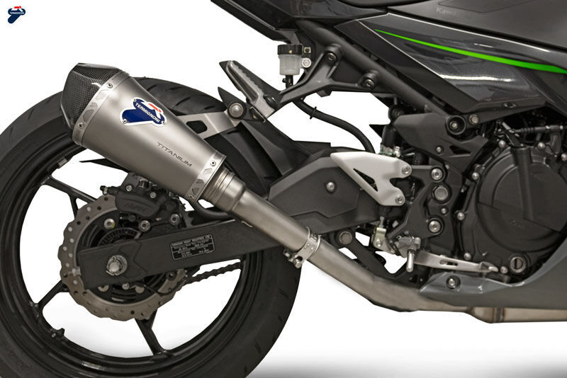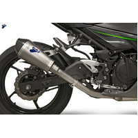 SLIP ON – RELEVANCE CONICO dedicated to KAWASAKI 400 NINJA – Z400 Made of: – Titanium jacket – Carbon end cap – Rivet clamps – Riveted logo. – DB Killer The system includes an adapter piece for connecting to the bike's original manifolds. FOR RACING USE ONLY – NOT EURO 4 APPROVED. Brand Kawasaki Model Ninja 400 YEAR OF PRODUCTION 2019 - 2020 Product Code K083094SO01 APPROVAL Racing Weight difference compared to OEM -3.5 kg MATERIAL MATERIAL Titanium, Carbon