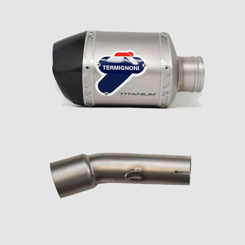 Supported vehicles: KAWASAKI NINJA 400 2018-2020 KAWASAKI Z 400 2018-2020 K083094SO04 Kit Includes: Relevance D70 Titanium Silencer Kit with Carbon Endcap with Stainless Steel Link pipe Features: - Sleeve Material: Titanium - EndCap Material: Carbon - Riveted Clamps - Riveted Logo A Termignoni silencer (or "Termignoni muffler") is a high-performance aftermarket exhaust component typically used on motorcycles, designed to enhance the bike's sound, performance, and aesthetic appeal. Termignoni is an Italian brand renowned for its high-quality exhaust systems, and their silencers are often featured in racing and performance applications. Key Features of a Termignoni Silencer: - Sound Quality: One of the standout features of Termignoni silencers is the distinctive and deep sound they produce. They are engineered to amplify the exhaust note while ensuring compliance with noise regulations, depending on the model and application. - Material Construction: Termignoni silencers are usually made from high-end materials like titanium, carbon fiber, and stainless steel. These materials are lightweight and durable, improving both the performance and the appearance of the motorcycle. - Performance: Termignoni exhaust systems, including their silencers, are designed to optimize exhaust flow, which can lead to increased horsepower and torque. This is particularly beneficial for riders who seek improved engine performance in both street and track conditions. - Design: Termignoni silencers are often sleek and stylish, with a focus on aesthetics that align with the high-performance motorcycle culture. Their design complements various motorcycle brands, including Ducati, Aprilia, and other premium performance bikes. - Racing and Street Models: Termignoni manufactures exhaust components for both racing and street applications. Racing models often feature lighter materials and more aggressive designs, while street models balance performance with noise regulation compliance for everyday use. - Tunability: In some cases, Termignoni offers full exhaust systems (not just the silencers) that are tuned for specific motorcycles, allowing for more precise adjustments to the exhaust flow, leading to better engine responsiveness and overall power output.
