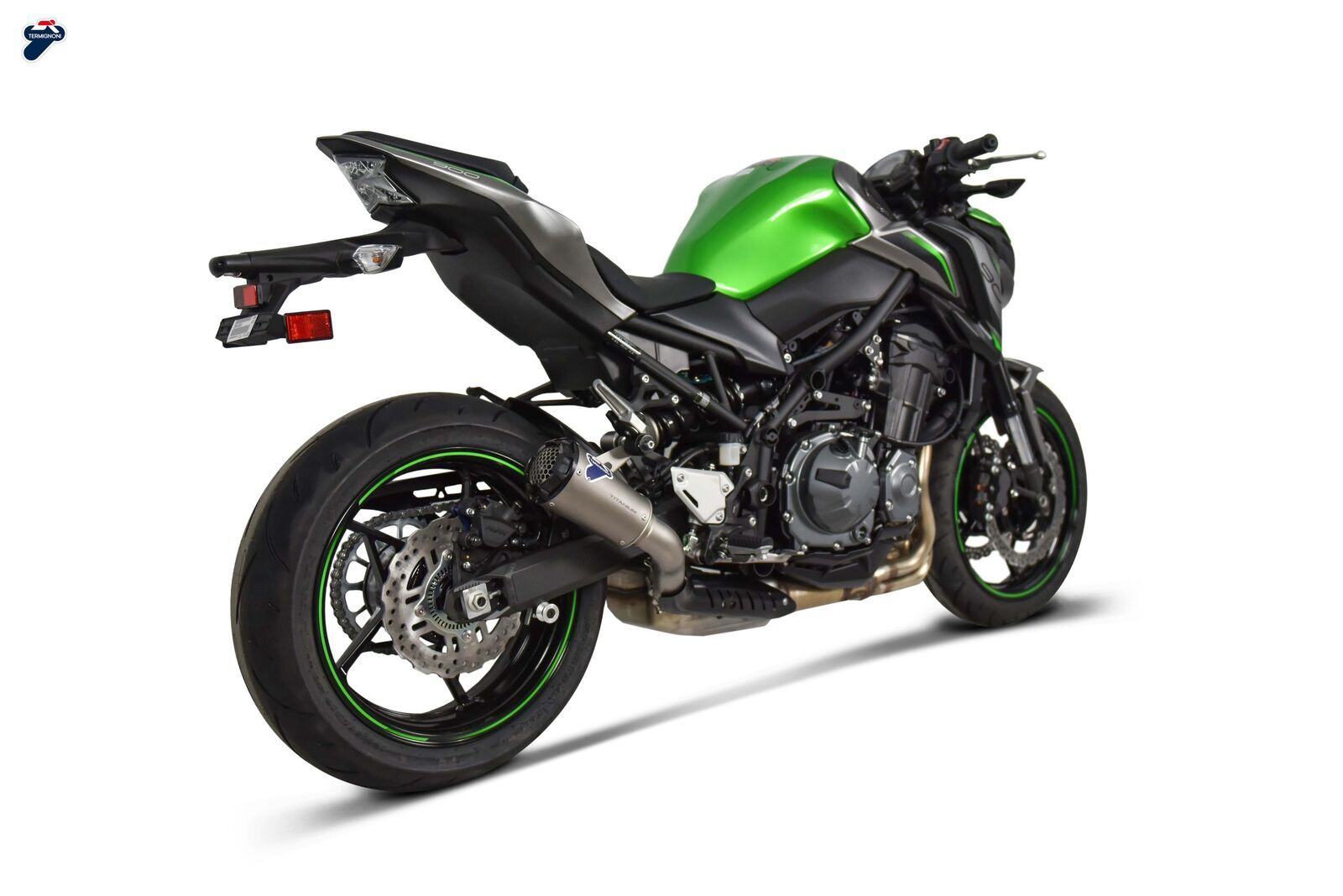 Racing Titanium silencer with carbon end cap NOT approved The kit includes: GP2R titanium silencer with carbon end cap + stainless steel decatalyst with the necessary screws for installation. The complete Termignoni exhaust system has been designed to enhance the already high torque and power, with particular attention to accentuating the aesthetics and sound of your bike. By installing the complete exhaust system, you get an improvement across the entire engine range, thus further improving the bike's performance, such as acceleration and weight. NOTE: Heat shield included in the package Weight difference compared to OEM -3.1 kg MATERIAL Titanium, Carbon Brand Kawasaki Model Z 900 2017-2020 YEAR OF PRODUCTION 2017 - 2020 Product Code K085094SO04 APPROVAL Racing