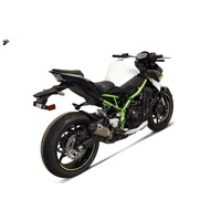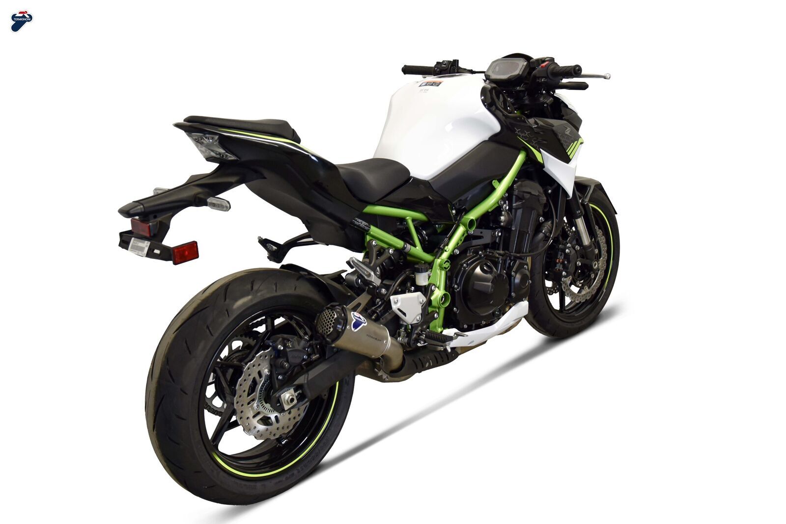 Titanium silencer with carbon end cap Racing NOT homologated. The kit includes: titanium silencer with GPR2 carbon end cap + stainless steel connecting pipe. The Termignoni exhaust kit has been designed to enhance the already high torque and power capabilities, with particular attention to accentuating the aesthetics and sound of your bike. By installing the kit, you will obtain an improvement across the entire engine range, thus further improving the performance of the bike, such as acceleration and weight. Specifications Brand Kawasaki Model Z 900 YEAR OF PRODUCTION 2020 - 2022 Product Code K087094SO02 APPROVAL Racing WEIGHT Weight difference compared to OEM -4 kg MATERIAL Titanium, Carbon