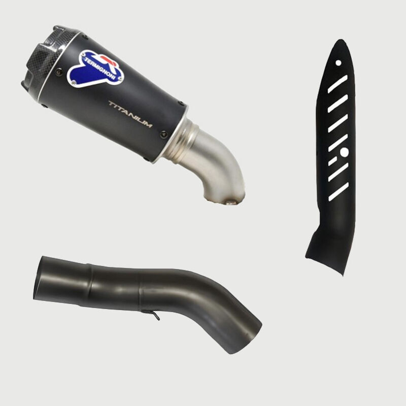 Supported vehicles: KAWASAKI Z 900 2020-2022 K087094SO08 Kit Includes: GP2R Black Titanium Silencer Kit with Carbon Endcap with Stainless Steel Link pipe and Heatshield Included Features: - EndCap Material: Carbon - Sleeve Material: Titanium Painted Black - Hexagonal Grid - Aluminium Riveted Logo - With Db-Killer A Termignoni silencer (or "Termignoni muffler") is a high-performance aftermarket exhaust component typically used on motorcycles, designed to enhance the bike's sound, performance, and aesthetic appeal. Termignoni is an Italian brand renowned for its high-quality exhaust systems, and their silencers are often featured in racing and performance applications. Key Features of a Termignoni Silencer: - Sound Quality: One of the standout features of Termignoni silencers is the distinctive and deep sound they produce. They are engineered to amplify the exhaust note while ensuring compliance with noise regulations, depending on the model and application. - Material Construction: Termignoni silencers are usually made from high-end materials like titanium, carbon fiber, and stainless steel. These materials are lightweight and durable, improving both the performance and the appearance of the motorcycle. - Performance: Termignoni exhaust systems, including their silencers, are designed to optimize exhaust flow, which can lead to increased horsepower and torque. This is particularly beneficial for riders who seek improved engine performance in both street and track conditions. - Design: Termignoni silencers are often sleek and stylish, with a focus on aesthetics that align with the high-performance motorcycle culture. Their design complements various motorcycle brands, including Ducati, Aprilia, and other premium performance bikes. - Racing and Street Models: Termignoni manufactures exhaust components for both racing and street applications. Racing models often feature lighter materials and more aggressive designs, while street models balance performance with noise regulation compliance for everyday use. - Tunability: In some cases, Termignoni offers full exhaust systems (not just the silencers) that are tuned for specific motorcycles, allowing for more precise adjustments to the exhaust flow, leading to better engine responsiveness and overall power output.