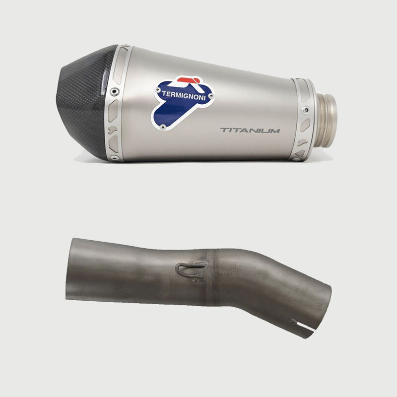 Supported vehicles: KAWASAKI ZX 10 R/RR 2020-2024 K089094SO01 Kit Includes: Relevance Conical Titanium Silencer Kit with Carbon Endcap with Stainless Steel Link pipe Features: - Sleeve Material: Titanium - EndCap Material: Carbon - Riveted Clamps - Riveted Logo - Removable Db-Killer A Termignoni silencer (or "Termignoni muffler") is a high-performance aftermarket exhaust component typically used on motorcycles, designed to enhance the bike's sound, performance, and aesthetic appeal. Termignoni is an Italian brand renowned for its high-quality exhaust systems, and their silencers are often featured in racing and performance applications. Key Features of a Termignoni Silencer: - Sound Quality: One of the standout features of Termignoni silencers is the distinctive and deep sound they produce. They are engineered to amplify the exhaust note while ensuring compliance with noise regulations, depending on the model and application. - Material Construction: Termignoni silencers are usually made from high-end materials like titanium, carbon fiber, and stainless steel. These materials are lightweight and durable, improving both the performance and the appearance of the motorcycle. - Performance: Termignoni exhaust systems, including their silencers, are designed to optimize exhaust flow, which can lead to increased horsepower and torque. This is particularly beneficial for riders who seek improved engine performance in both street and track conditions. - Design: Termignoni silencers are often sleek and stylish, with a focus on aesthetics that align with the high-performance motorcycle culture. Their design complements various motorcycle brands, including Ducati, Aprilia, and other premium performance bikes. - Racing and Street Models: Termignoni manufactures exhaust components for both racing and street applications. Racing models often feature lighter materials and more aggressive designs, while street models balance performance with noise regulation compliance for everyday use. - Tunability: In some cases, Termignoni offers full exhaust systems (not just the silencers) that are tuned for specific motorcycles, allowing for more precise adjustments to the exhaust flow, leading to better engine responsiveness and overall power output.