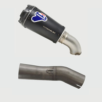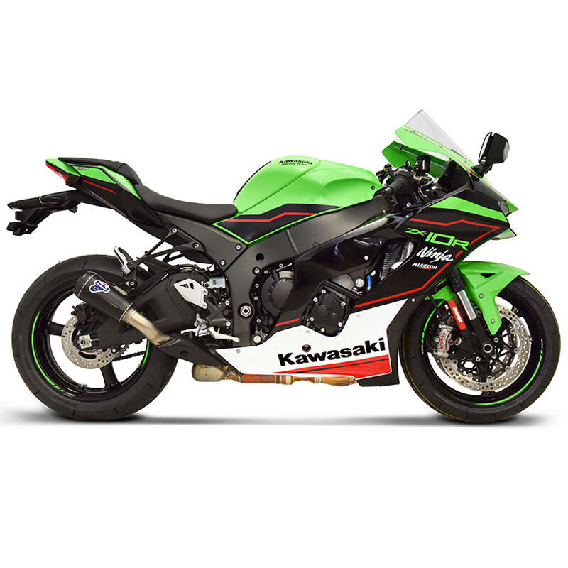 Supported vehicles: KAWASAKI ZX 10 R/RR 2021-2024 K089094SO08 Kit Includes: GP2R Black Titanium Silencer Kit with Carbon Endcap with Stainless Steel Link pipe Features: - EndCap Material: Carbon - Sleeve Material: Titanium Painted Black - Hexagonal Grid - Aluminium Riveted Logo - With Db-Killer A Termignoni silencer (or "Termignoni muffler") is a high-performance aftermarket exhaust component typically used on motorcycles, designed to enhance the bike's sound, performance, and aesthetic appeal. Termignoni is an Italian brand renowned for its high-quality exhaust systems, and their silencers are often featured in racing and performance applications. Key Features of a Termignoni Silencer: - Sound Quality: One of the standout features of Termignoni silencers is the distinctive and deep sound they produce. They are engineered to amplify the exhaust note while ensuring compliance with noise regulations, depending on the model and application. - Material Construction: Termignoni silencers are usually made from high-end materials like titanium, carbon fiber, and stainless steel. These materials are lightweight and durable, improving both the performance and the appearance of the motorcycle. - Performance: Termignoni exhaust systems, including their silencers, are designed to optimize exhaust flow, which can lead to increased horsepower and torque. This is particularly beneficial for riders who seek improved engine performance in both street and track conditions. - Design: Termignoni silencers are often sleek and stylish, with a focus on aesthetics that align with the high-performance motorcycle culture. Their design complements various motorcycle brands, including Ducati, Aprilia, and other premium performance bikes. - Racing and Street Models: Termignoni manufactures exhaust components for both racing and street applications. Racing models often feature lighter materials and more aggressive designs, while street models balance performance with noise regulation compliance for everyday use. - Tunability: In some cases, Termignoni offers full exhaust systems (not just the silencers) that are tuned for specific motorcycles, allowing for more precise adjustments to the exhaust flow, leading to better engine responsiveness and overall power output.