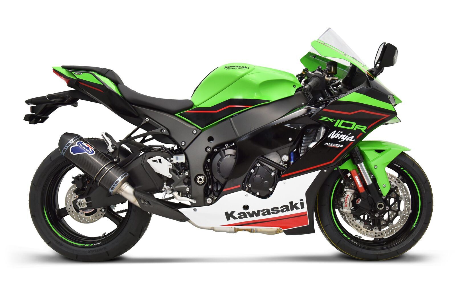 Our new racing slip-on exhaust for the 2020-2024 Kawasaki ZX-10R-RR features a full titanium muffler, carbon sleeve, carbon end cap, and titanium link pipe. The kit is available with part number K091094SR01. To upgrade to the full system, the decat kit is available with part number K09009420T, for maximum performance and significant weight savings. The carbon heat shield is sold separately with part number K0909469C. Specifications Brand Kawasaki Model ZX-10 R YEAR OF PRODUCTION 2019 - 2024 Product Code K091094SR01 APPROVAL Racing MATERIAL Titanium, Carbon