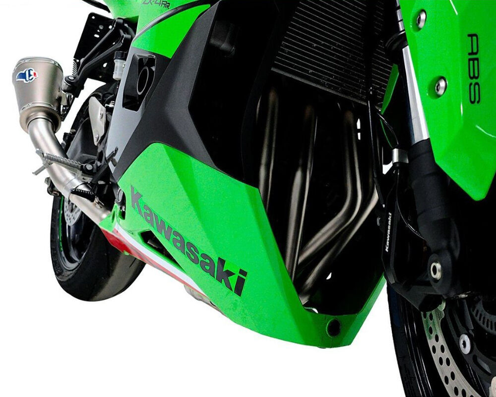 Supported vehicles: KAWASAKI ZX 4 RR 2024-2025 FULL KIT: K093SO0100IIC The Full System is Characterized by Stainless Steel Headers and Structure with Stainless Steel Sleeve Silencer and Carbon Endcap Features: - Headers Material : Stainless Steel - Silencer Sleeve: Stainless Steel - Endcap: Carbon - Weight Saving: - 3,1 kg - Power: + 1,4 CV @ 14950 rpm - Max Power Gain: + 2,8 CV @ 12400 rpm - Torque: + 0,5 Nm @ 14950 rpm - Max Torque Gain: + 1,2 Nm @ 12400 rpm A Termignoni silencer is a high-performance aftermarket exhaust component typically used on motorcycles, designed to enhance the bike's sound, performance, and aesthetic appeal. Termignoni is an Italian brand renowned for its high-quality exhaust systems, and their silencers are often featured in racing and performance applications.