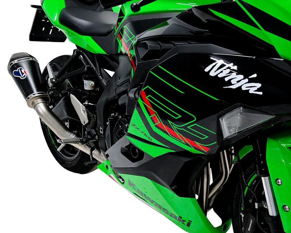 Supported vehicles: KAWASAKI ZX 4 RR 2024-2025 SILENCER: K093SO0140IBC The exhaust is characterized by the main structure in stainless steel with Black Stainless Steel Sleeve, Carbon Endcap and Removable Db Killer, with Link Pipe Included Features: - Sleeve Material: Stainless Steel - Endcap Material: Carbon - Con Db Killer: 100 db @5500 rpm - Senza Db Killer 103,5 db @5500 rpm A Termignoni silencer is a high-performance aftermarket exhaust component typically used on motorcycles, designed to enhance the bike's sound, performance, and aesthetic appeal. Termignoni is an Italian brand renowned for its high-quality exhaust systems, and their silencers are often featured in racing and performance applications.