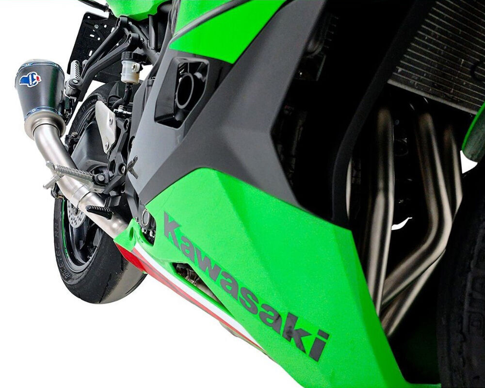 Supported vehicles: KAWASAKI ZX 4 RR 2024-2025 FULL KIT: K093SO0600INC The Full System is Characterized by Stainless Steel Headers and Structure with Black Titanium Sleeve Silencer and Carbon Endcap Features: - Headers Material : Stainless Steel - Silencer Sleeve: Titanium - Endcap: Carbon - Weight Saving: - 3,1 kg - Power: + 1,4 CV @ 14950 rpm - Max Power Gain: + 2,8 CV @ 12400 rpm - Torque: + 0,5 Nm @ 14950 rpm - Max Torque Gain: + 1,2 Nm @ 12400 rpm