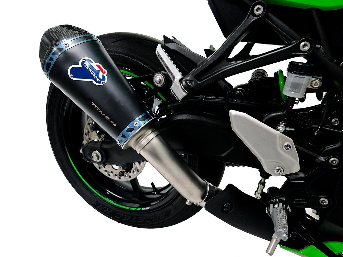 Supported vehicles: KAWASAKI ZX 4 RR 2024-2025 SILENCER: K093SO0640INC The exhaust is characterized by the main structure in stainless steel with Black Titanium Sleeve, Carbon Endcap and Removable Db Killer, with Link Pipe Included Features: - Sleeve Material: Stainless Steel - Endcap Material: Carbon - Con Db Killer: 100 db @5500 rpm - Senza Db Killer 103,5 db @5500 rpm A Termignoni silencer is a high-performance aftermarket exhaust component typically used on motorcycles, designed to enhance the bike's sound, performance, and aesthetic appeal. Termignoni is an Italian brand renowned for its high-quality exhaust systems, and their silencers are often featured in racing and performance applications.