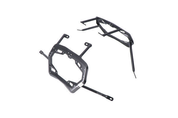 Extremely durable due to its optimized shape and 2.5 mm thick steel Perfect fit, expertly designed to fit close to the bike Fully removable equipped with newly developed, even more robust quick-release fasteners OptionaL anti-theft protection available ideal for permanent mounting, quick-release fasteners can be replaced equipped with standard parts (M8) Numerous functionaL bores Simple mounting on original mounting points PowerfuL corrosion protection thanks to powder coating Secure hold ideal for TRAX, AERO and SysBags equipped with adapter plate (SysBag 15, 30, WP L) Included in delivery 2 × PRO Side carrier Mounting instructions Mounting Material Details Material: SteeL Surface: powder coated Color: black Total Weight: appr.5.7 kg / appr.12.6 lb Width built onto motorcycle: 57.0 cm / 22.4 in Note Adapter kits are required ideal for aluminium cases from SW-MOTECH and other manufacturers and also ideal for AERO ABS side cases and SysBags equipped with adapter plates (SysBag 15, 30, WP L).