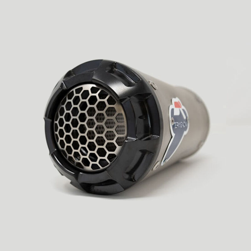 Supported vehicles: KTM DUKE 390 2017-2019 KT18094SO02 Kit Includes: GP2R-RHT Titanium Silencer Kit with Aluminium Endcap with Stainless Steel Link pipe Features: - Sleeve Material: Titanium - EndCap Material: Aluminum - Grid - Riveted Logo - Removable Db-Killer A Termignoni silencer (or "Termignoni muffler") is a high-performance aftermarket exhaust component typically used on motorcycles, designed to enhance the bike's sound, performance, and aesthetic appeal. Termignoni is an Italian brand renowned for its high-quality exhaust systems, and their silencers are often featured in racing and performance applications.