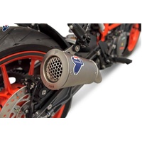 Supported vehicles: KTM DUKE 390 2017-2019 KT18094SO03 Kit Includes: GP2R-R Stainless Steel Silencer Kit with Stainless Steel Endcap with Stainless Steel Link pipe Features: - Sleeve Material: Stainless Steel - EndCap Material: Stainless Steel - Grid - Riveted Logo A Termignoni silencer (or "Termignoni muffler") is a high-performance aftermarket exhaust component typically used on motorcycles, designed to enhance the bike's sound, performance, and aesthetic appeal. Termignoni is an Italian brand renowned for its high-quality exhaust systems, and their silencers are often featured in racing and performance applications.