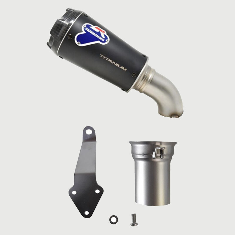 Supported vehicles: KTM SUPER DUKE 1290 R 2017-2019 KT22094SO08 Kit Includes: GP2R Black Titanium Silencer Kit with Carbon Endcap with Stainless Steel Link pipe Features: - EndCap Material: Carbon - Sleeve Material: Titanium Painted Black - Hexagonal Grid - Aluminium Riveted Logo - With Db-Killer A Termignoni silencer (or "Termignoni muffler") is a high-performance aftermarket exhaust component typically used on motorcycles, designed to enhance the bike's sound, performance, and aesthetic appeal. Termignoni is an Italian brand renowned for its high-quality exhaust systems, and their silencers are often featured in racing and performance applications.