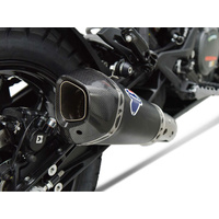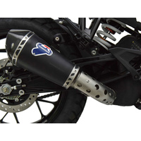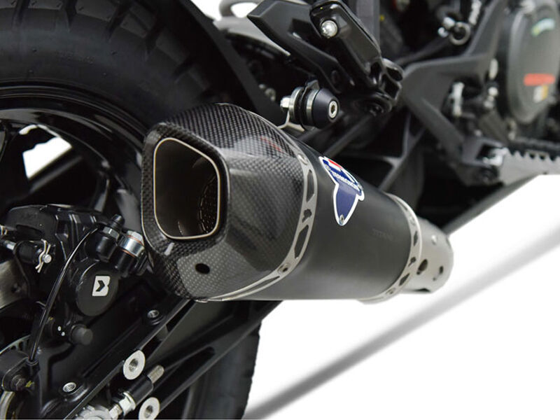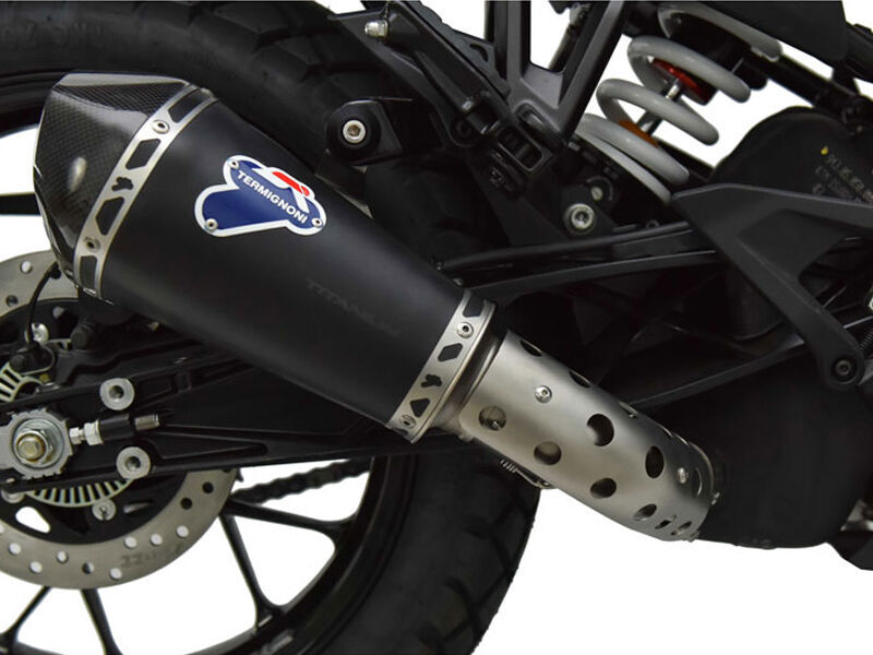 Supported vehicles: KTM ADVENTURE 390 2020-2022 KT23094SO09 Kit Includes: Relevance Conical Black Titanium Silencer Kit with Carbon Endcap with Stainless Steel Link pipe and Heatshield Features: - EndCap Material: Carbon - Sleeve Material: Titanium Painted Black - Riveted Clamps - Riveted Logo - With Db-Killer A Termignoni silencer (or "Termignoni muffler") is a high-performance aftermarket exhaust component typically used on motorcycles, designed to enhance the bike's sound, performance, and aesthetic appeal. Termignoni is an Italian brand renowned for its high-quality exhaust systems, and their silencers are often featured in racing and performance applications.