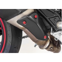 Screws guarde exhaust kit CNC machined from light alloy billet and then given an anodized surface finish. It replaces the stock part, giving a high-end race-style look. No modifications required to fit the cover.Kit is composed of three screw Please check Specifications for model compatibility.Delivery note: At Sportsbike, we offer a wide range of high-quality products, many of which are sourced directly from Europe. We have stock both in Australia and shipped in directly from Europe. Therefore, please allow 1-3 weeks for delivery. This ensures we can provide the best selection and service for your specific needs. We will confirm the ETA of shipping within 24-48 hours of an order being placed. Thank you for your understanding and patience!