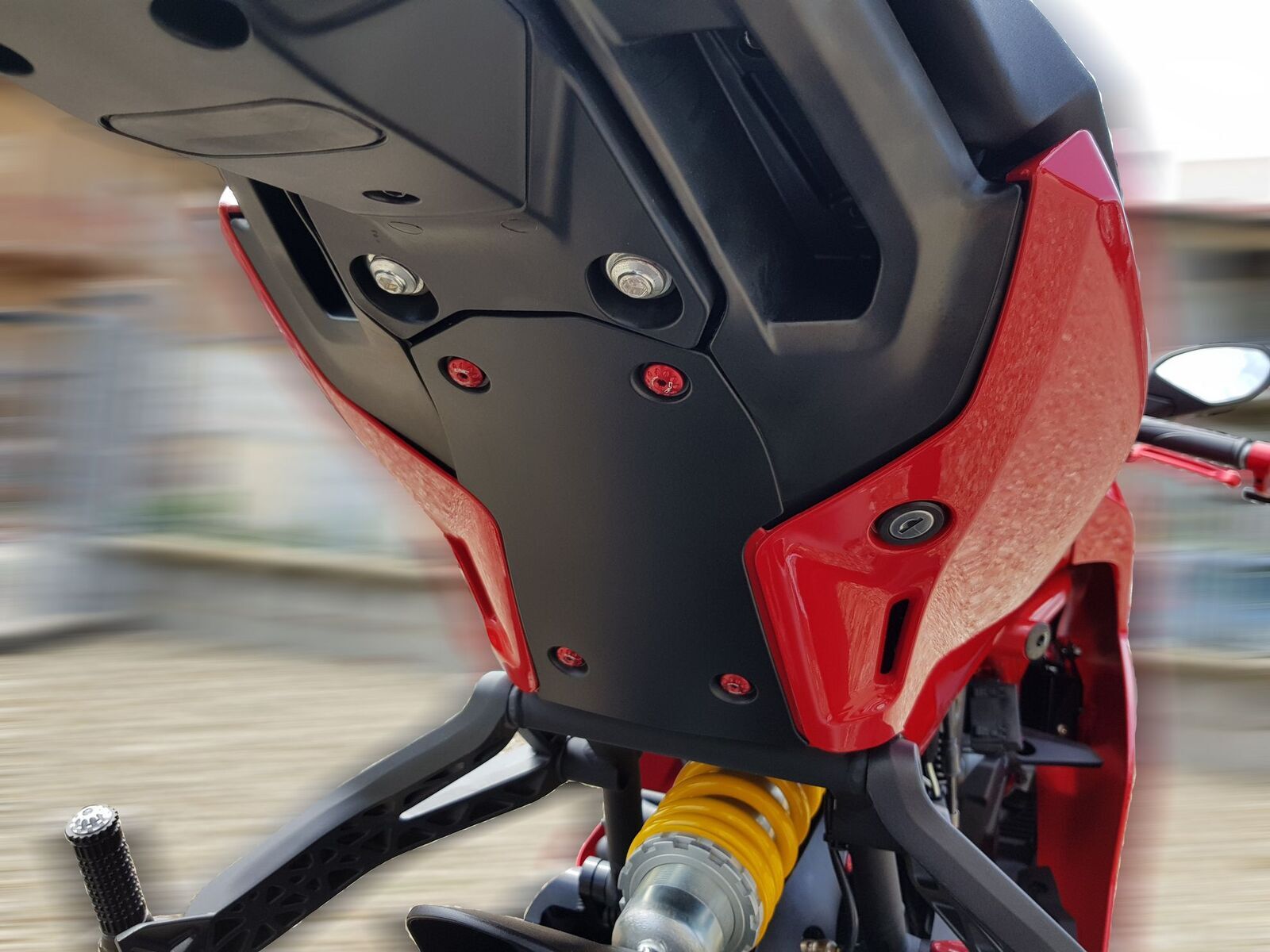 Undertail cover screws CNC machined from light alloy billet and then given a coloured anodized surface finish.Kit is composed by 4 screws, that replace the original ones without any changes Please check Specifications for model compatibility.Delivery note: At Sportsbike, we offer a wide range of high-quality products, many of which are sourced directly from Europe. We have stock both in Australia and shipped in directly from Europe. Therefore, please allow 1-3 weeks for delivery. This ensures we can provide the best selection and service for your specific needs. We will confirm the ETA of shipping within 24-48 hours of an order being placed. Thank you for your understanding and patience!