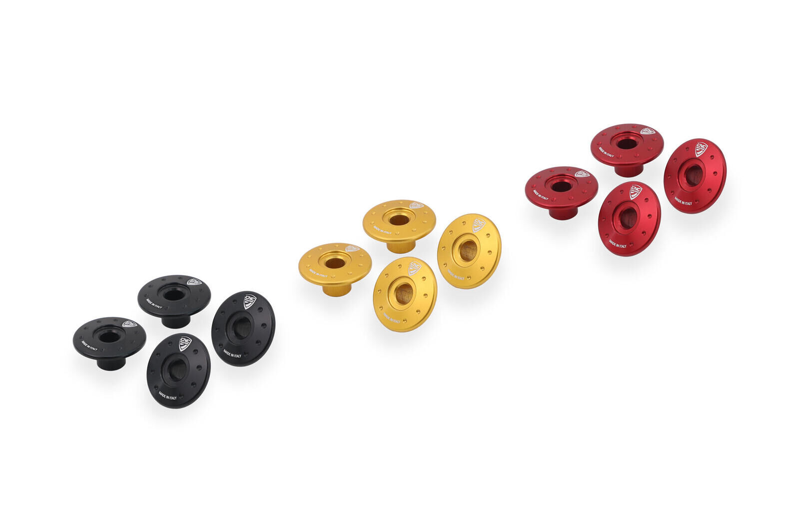 Windshield screw bushes for Moto Guzzi made in light alloy, machined from solid and then anodized.Installation is very easy with no modifications required, they just replace the OEM parts.The kit consists of 4 piece. Please check Specifications for model compatibility.Delivery note: At Sportsbike, we offer a wide range of high-quality products, many of which are sourced directly from Europe. We have stock both in Australia and shipped in directly from Europe. Therefore, please allow 1-3 weeks for delivery. This ensures we can provide the best selection and service for your specific needs. We will confirm the ETA of shipping within 24-48 hours of an order being placed. Thank you for your understanding and patience!