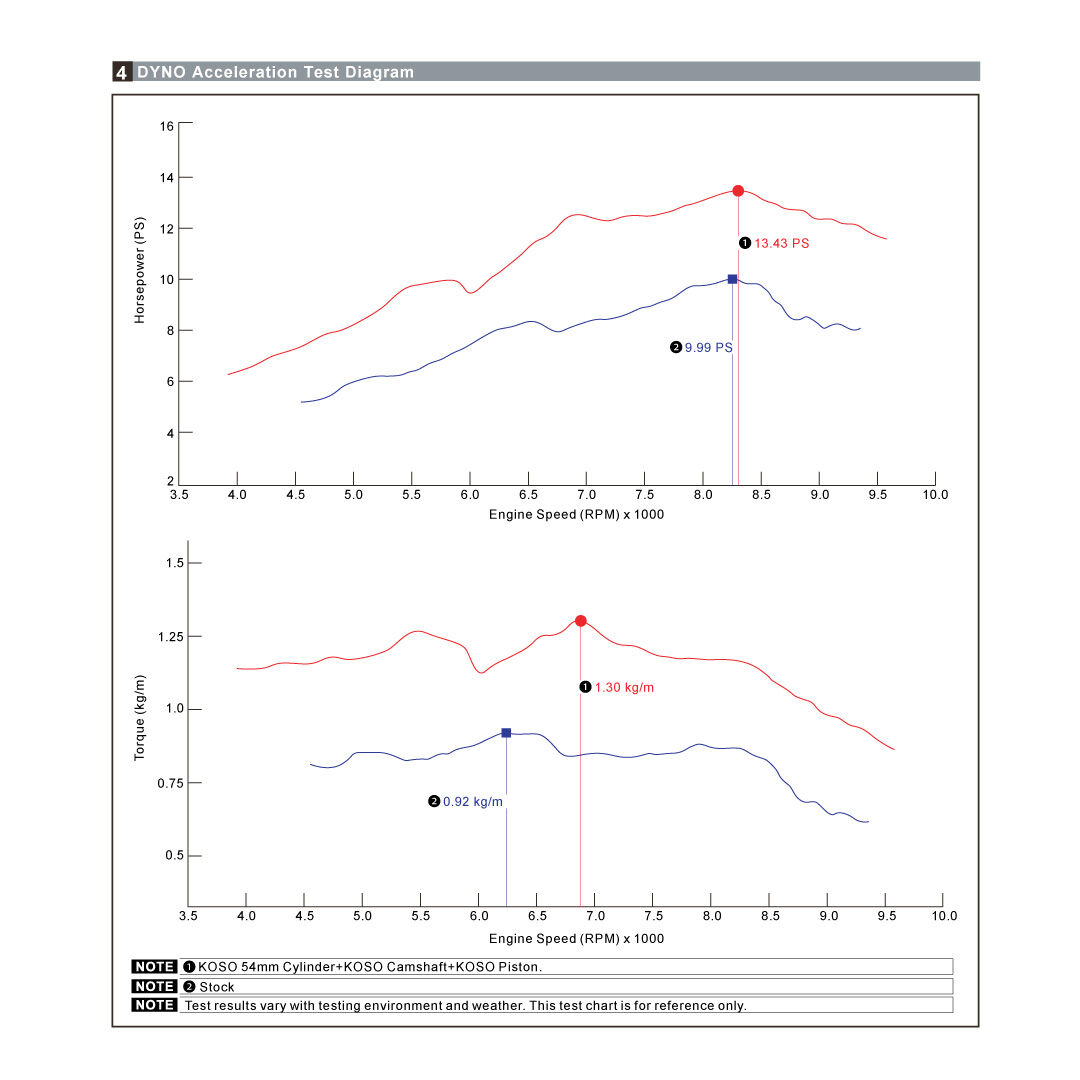 THIS IS AN AFTERMARKET PART BUILT FOR RACING PURPOSES ONLY. KOSO IS NOT RESPONSIBLE FOR ANY DAMAGES CAUSED TO THE PARTS, VEHICLE, OR TO YOURSELF AND OTHERS. ENGINE PARTS ARE NOT UNDER WARRANTY NOR IS COLLATERAL DAMAGE OR COST OF LABOR, IN CASES OF MALFUNCTION.