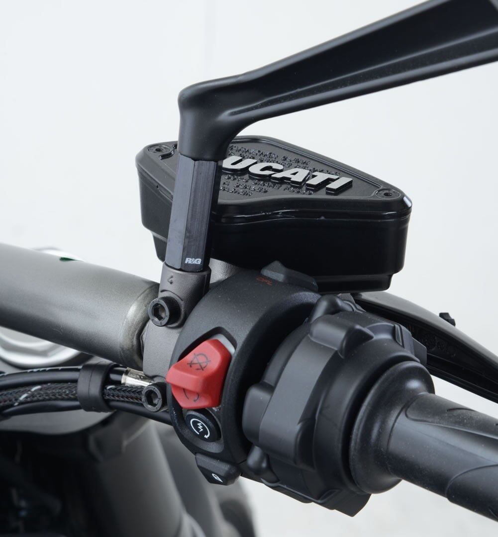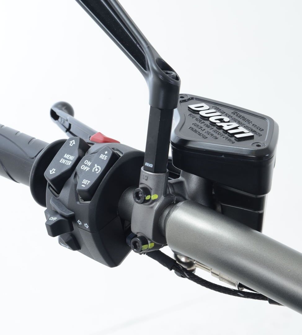 BRAND: R&G Racing SKU: MR0002BKThese mirror risers are made from 6082 t6 aluminium and are suitable for any bike with an m8 x 1.25 threaded mirror socket.