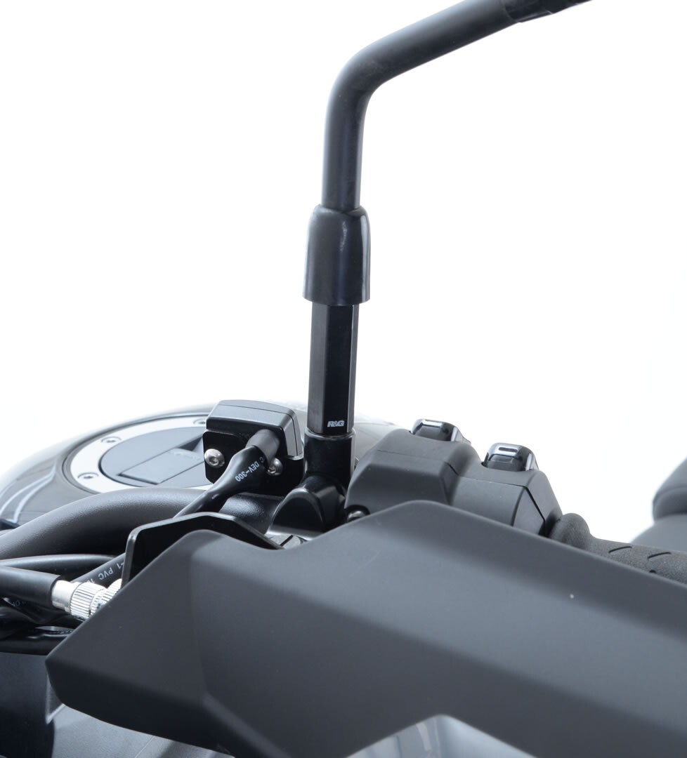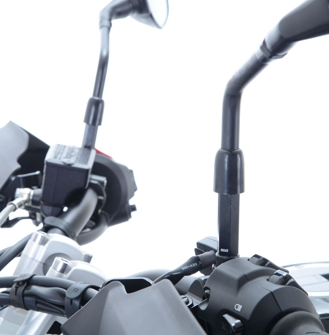 BRAND: R&G Racing SKU: MR0010BKThese mirror risers are made from 6082 t6 aluminium and are suitable for any bike with an imperial 1/2-20 unf threaded mirror socket including the Harley Davidson Street 750/500 Models.