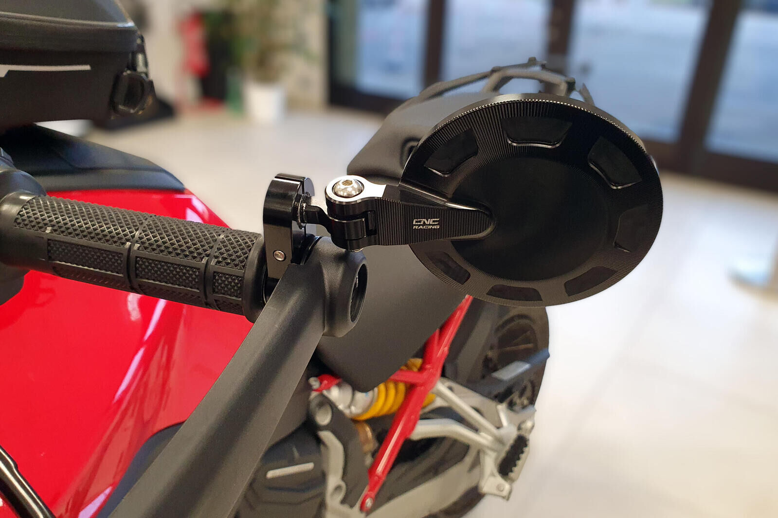 The adapter allows mounting the Rocket and EVO bar-end mirrors on the original Ducati Multistrada V4 and DesertX handguards.The part is made of light alloy, machined from solid and then anodized.Assembly is simple, replaces the original handlebar weight and requires no modification.The kit consists of 1 piece that can be used for the left or right mirror. Please check Specifications for model compatibility.Delivery note: At Sportsbike, we offer a wide range of high-quality products, many of which are sourced directly from Europe. We have stock both in Australia and shipped in directly from Europe. Therefore, please allow 1-3 weeks for delivery. This ensures we can provide the best selection and service for your specific needs. We will confirm the ETA of shipping within 24-48 hours of an order being placed. Thank you for your understanding and patience!