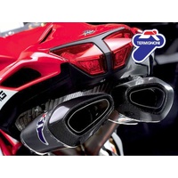 Termignoni offers the complete full titanium “racing – superbike replica” system, code MV11 , characterised by the exclusive “Force” design dedicated to the MV AGUSTA F4 (year 2010-2019). The titanium shirt is equipped with a carbon end cap, with removable dbkiller and collectors completely in full titanium , to give your bike even more lightness and power at all revs. ATTENTION : The product can only be mounted by removing the standard license plate holder. Specifications Brand MV Agusta Model F4 YEAR OF PRODUCTION 2010 - 2019 Product Code MV11094TFT APPROVAL Racing