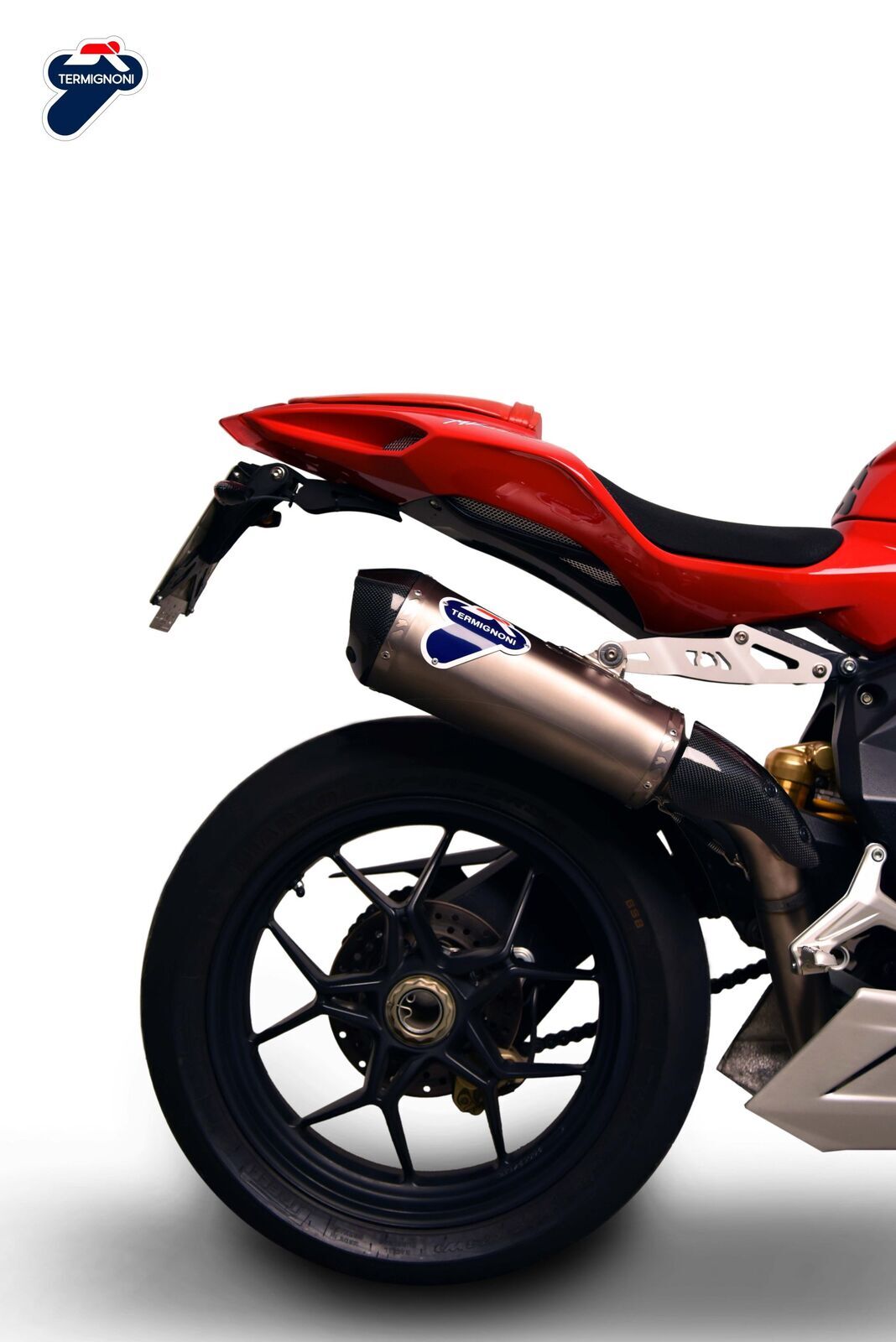 New Termignoni racing silencer with an innovative design, which allows for a significant reduction in size and weight. Termignoni offers its professionalism and the experience of its technicians to offer the best available on the aftermarket. The Slip-On silencer (with titanium sleeve and carbon end cap) can be mounted on both original and Termignoni collectors. This exhaust can give you up to +3.7 hp and +4.3 Nm of torque at 6100 rpm. As with all the exhausts in the Termignoni line, developed with the experience gained in MotoGP and Superbike, the R&D racing department works daily to reach the highest levels by enhancing the power and acceleration of each bike. Specifications Brand MV Agusta Model F3 675 - 800 YEAR OF PRODUCTION 2012 - 2020 Product Code MV1709440TTC APPROVAL Racing WEIGHT Weight difference compared to OEM -2.25 kg POWER [HP], Delta vs OEM MAX Gain 3.7 HP @ 6100 rpm TORQUE [Nm], Delta vs OEM Max Gain 4.3Nm@6100rpm MATERIAL MATERIAL Titanium, Carbon